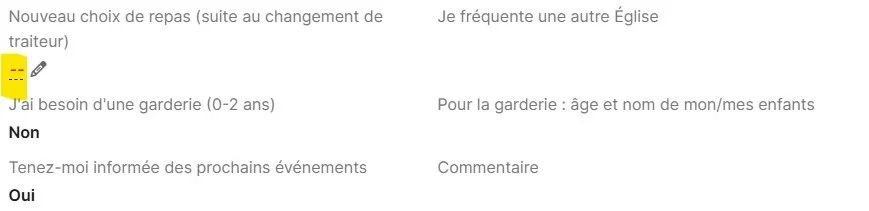 Changement de repas pour celles qui se sont déjà inscrites